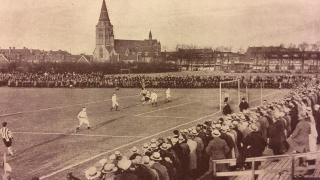 Het terrein van Hercules, waar de finale tussen LONGA en De Spartaan werd gespeeld, tijdens een competitiewedstrijd van de Utrechtse club.