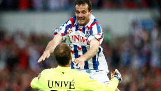 Gerald Sibon en Hans Vonk springen elkaar in de armen - Foto: KNVB Media