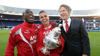 Josi Altidore, Adam Maher en Gertjan Verbeek (vlnr) vieren het winnen van de KNVB Beker - Foto: KNVB Media