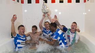 De spelers van PEC Zwolle vieren hun feestje in de kleedkamer - Foto: KNVB Media