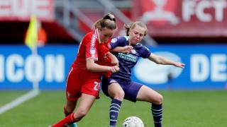 FC Twente-talent Wieke Kaptein in duel met Janou Levels van PSV tijdens de ontmoeting vorig jaar. - Foto: KNVB Media