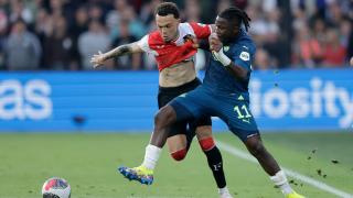 In de 68e minuut schreeuwde heel PSV om een penalty toen Noa Lang onderuit ging in een duel met Mats Wieffer. De Feyenoord-middenvelder raakte de bal, maar zeker ook de voet van Lang. Zelfs de meest verstokte Feyenoord-supporter had niet raar opgekeken als scheidsrechter Dennis Higler voor een penalty had gefloten. 'Een gelukje', zei Wieffer na afloop.