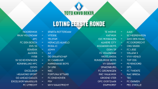 Zaterdag vond de loting voor de eerste ronde van de TOTO KNVB Beker plaats. In de kokers zaten de namen van de winnende amateurclubs uit de tweede voorronde, de clubs uit de Eredivisie en Keuken Kampioen Divisie en de periodekampioenen van de Tweede Divisie.