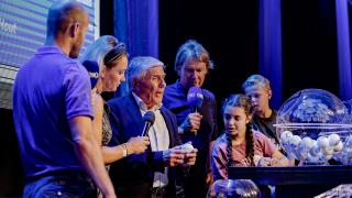 Sjaak Swart verrichtte de loting tijdens het FOX Sports & Eredivisie Voetbalfestival. - Foto: KNVB Media