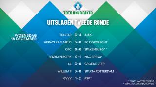 De uitslagen van woensdag 18 december in de tweede van het KNVB Bekertoernooi.