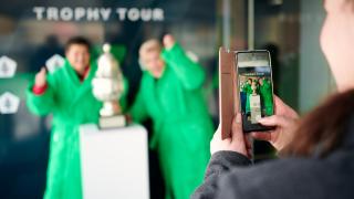 Een unieke kans voor voetbalsupporters om als een ware bekerwinnaar met de ‘Dennenappel’ op de foto te gaan. - Foto: Bram Berkien