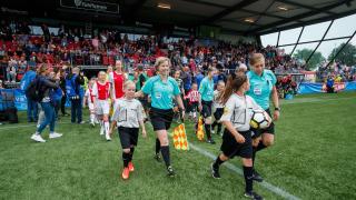 De speelsters komen het veld op tijdens de finale in 2018, toen in Spakenburg. - Foto: KNVB Media