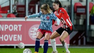 PSV en Ajax nemen het tegen elkaar op in de halve finale van de TOTO KNVB Beker Vrouwen. - Foto: Soccrates Images
