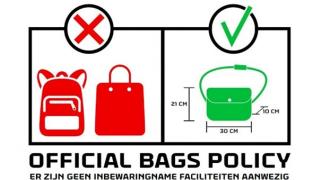 Alleen tassen van A4 formaat (30 x 21 x 10 cm) of kleiner mogen, na controle, het stadion mee in worden genomen. Tassen, koffers of goederen groter dan A4 formaat zijn dus niet toegestaan en zullen worden geweigerd bij de ingang. Als je vanwege medische redenen een tas, groter dan het toegestane formaat, mee dient te nemen naar het stadion, kun je dit vooraf laten weten via internetverkoop@knvb.nl.